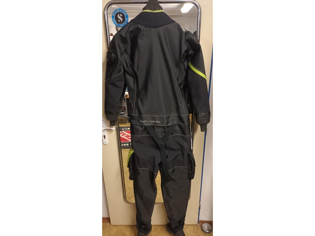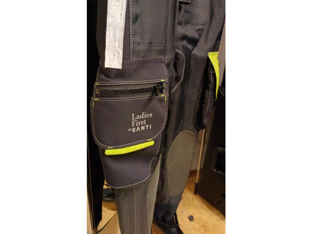 Kolena jsou vyztužena kevlarovou ochranou. U modelu Ladies First je zip umístěn z pravého ramene k levému boku pro individuální umístění vypouštěcího ventilu.