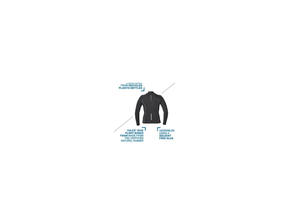 Tento 3mm vrchní díl s dlouhým rukávem lze kombinovat s 3mm kalhotami jako alternativa k neoprenu Everflex YULEX® 3/2mm. Navržen podle konceptu Pure Design, kde je použito méně švů a panelů pro maximální pohodlí a volnost pohybu. Vrchní díl má neviditelně šité švy a černou elastickou polyesterovou podšívku uvnitř i zvenčí. Velmi pružný, vrchní díl je vybaven svislým předním zipem a rukávy mají lemované manžety fuse-cut, které jsou velmi pružné a usnadňují oblékání. Vrchní díl poskytuje odolnou tkaninu proti oděru a na ramenou jsou navíc tištěné výztuhy, které chrání před odřením od BCD (balastní vesty).