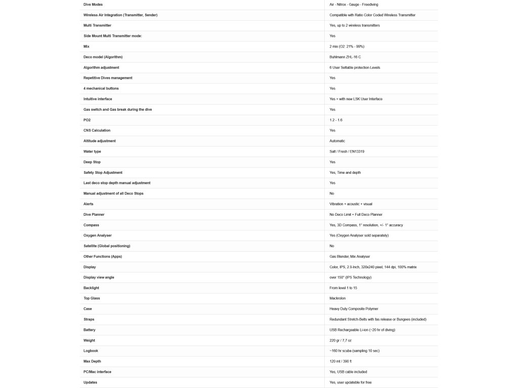s algoritmem Buhlmann ZHL-16C, který je snadný na používání.