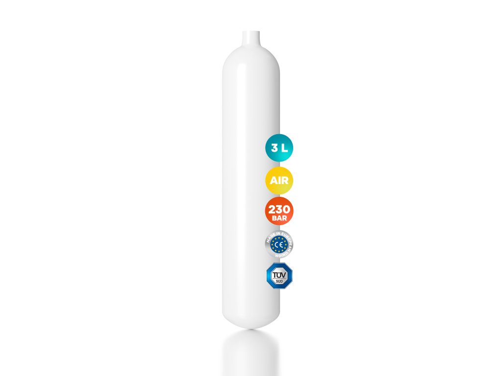 Tlaková lahev 3 L (230 bar). Variantně včetně ventilu - po rozkliknutí produktu.