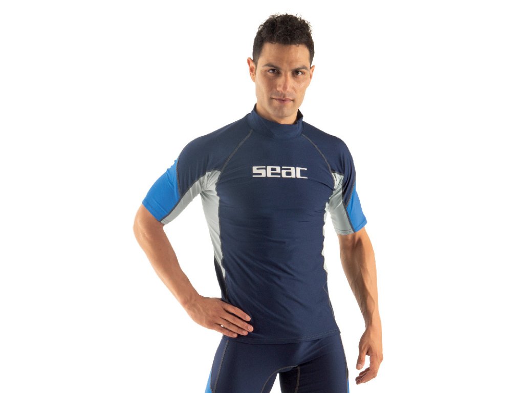 Krátké triko rash guard Seac RAA Evo chrání trup a ramena před případnými odřeninami způsobenými třením výstroje, skalistého dna nebo kontaktem s medúzami a dalšími dráždivými živočichy.