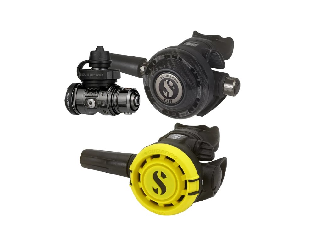 Tento prémiový systém je vybaven modelem SCUBAPRO MK19 EVO se speciální ultra odolnou povrchovou úpravou Black Tech a vylepšenou verzí nejoblíbenějšího druhého stupně SCUBAPRO pro technické potápění G260. Model G260 Carbon BT si zachovává velkou membránu, vnitřní kovové součásti a vysokoprůtokový výfukový ventil pro vynikající citlivost dýchání a odolnost proti zamrznutí, ale díky přidání předního krytu z uhlíkových vláken zvyšuje svou robustnost a odolnost. Karbonová vlákna jsou lehká a extrémně odolná, takže při pádu nebo nárazu do tvrdého předmětu vydrží bez poškození značné nárazy. První i druhý stupeň jsou na svých kovových částech opatřeny povrchovou úpravou Black Tech DLC (Diamond-Like Carbon). MK19 EVO BT/G260 Carbon BT je robustní, spolehlivý a ostře vyhlížející regulační systém, který poskytuje solidní dýchací výkon za všech potápěčských podmínek a teplot vody + R105 OCTOPUS
