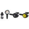 - Dva protilehlé vysokotlaké výstupy - uspořádání vysokotlaké a nízkotlaké hadice je rozhodující pro komfortní potápění. Dva protilehlé vysokotlaké výstupy umožňují individuální umístění prvního stupně (směrem nahoru nebo dolů). To umožňuje umístění přístrojů buď na pravou, nebo levou stranu a poskytuje tak více svobody v oblasti hlavy a krku.