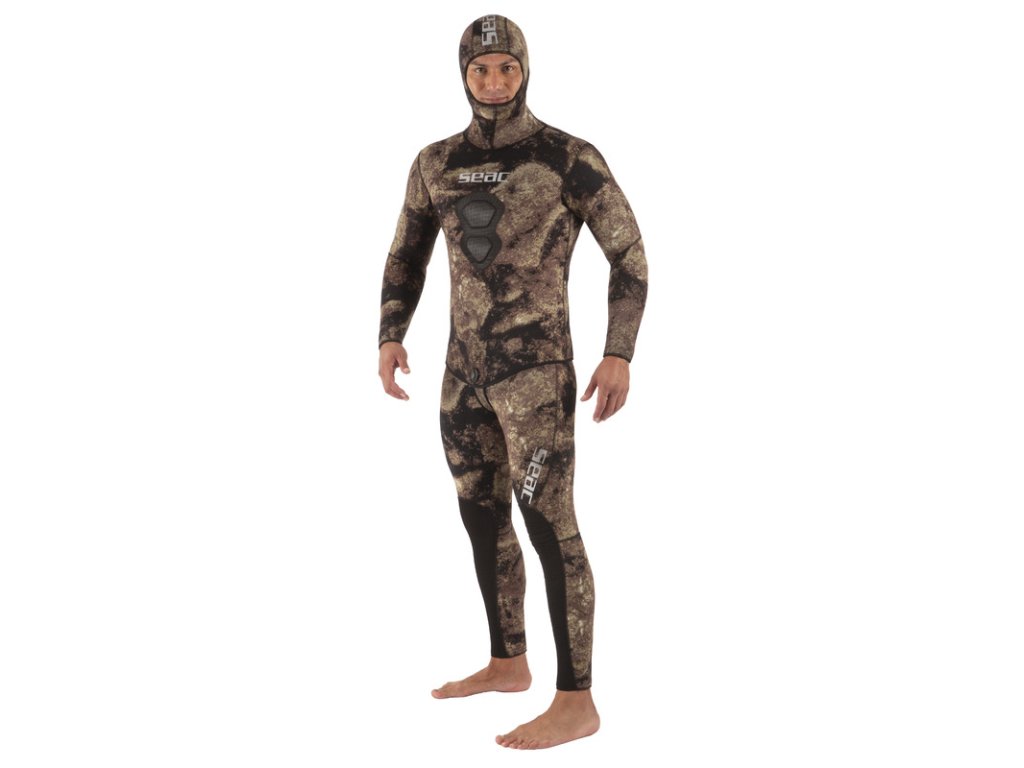 camo (maskovací) vzor, který pomáhá splynout s prostředím – oblíbené hlavně u spearfisherů,