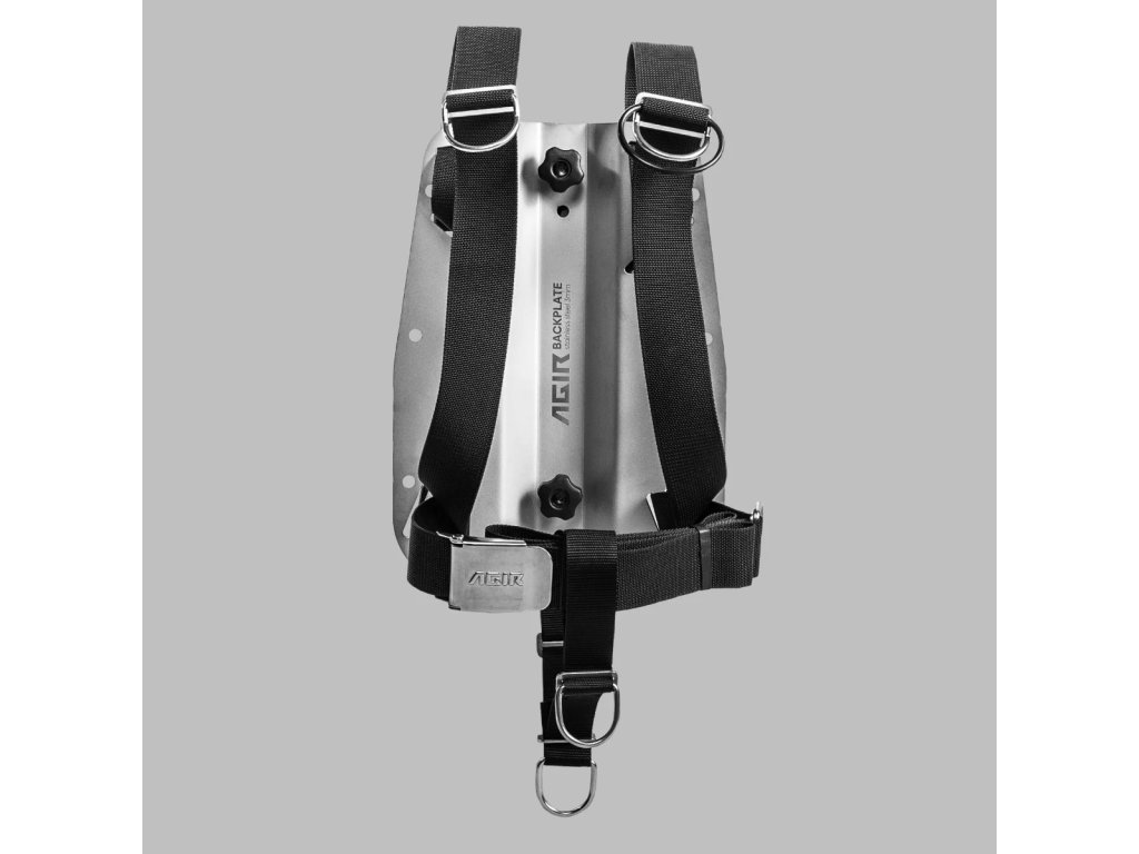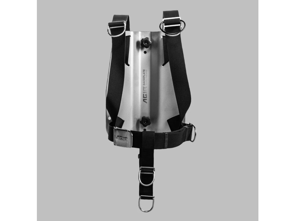 Deska je vyrobena s maximální péčí a má přídavné otvory pro bederní pás, které umožňují nastavení polohy postroje nebo připevnění zátěžových kapes AGIR. Díky dvěma otvorům ve spodní části desky s různou šířkou lze připojit rozkrokový popruh o šířce 40 nebo 50 mm. Zvýšené zakřivení desky zajišťuje, že ani dlouhé šrouby nepoškodí náš oblek či neopren, což zároveň přispívá k pohodlí při používání. Další výhodou je možnost montáže matic s plastovým povlakem, které usnadňují přitažení desky k lahvi.