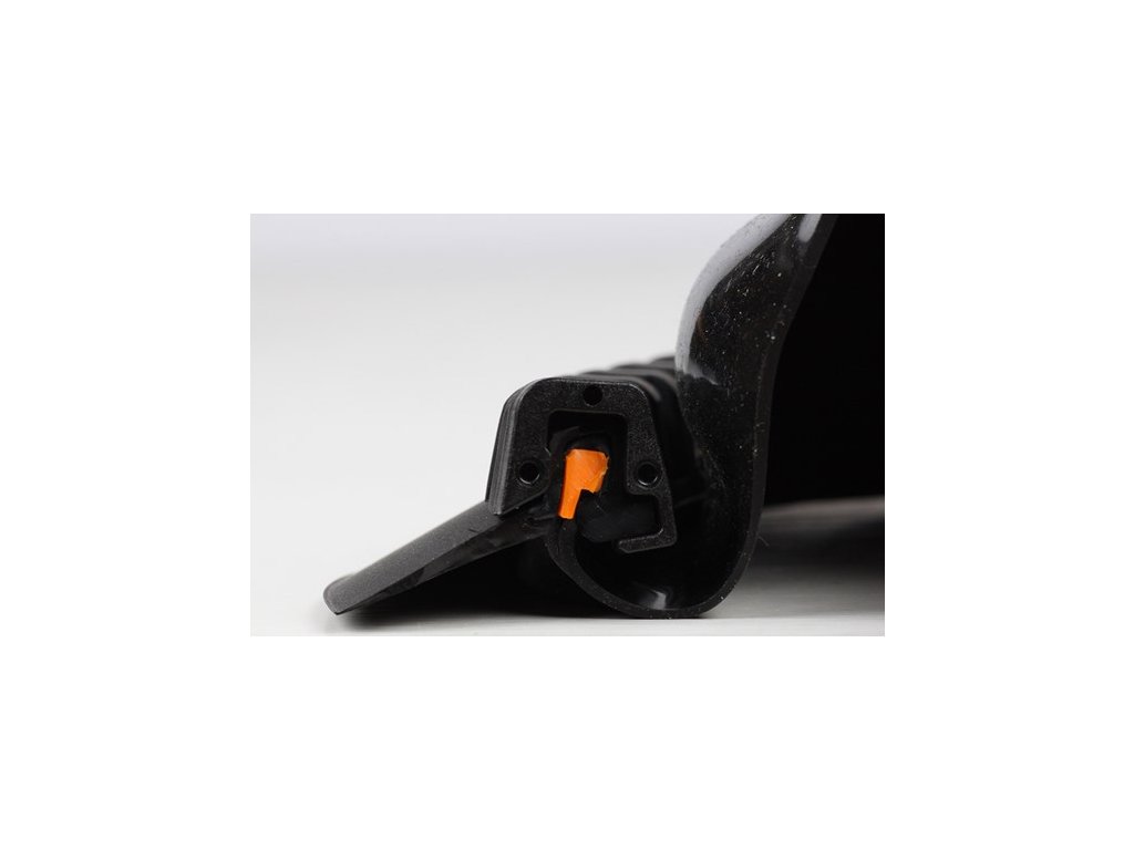 Krční kroužek a pojistní kroužek jsou vyrobeny z měkčího materiálu a jsou přidány klipy, které udržují krční manžetu na místě.