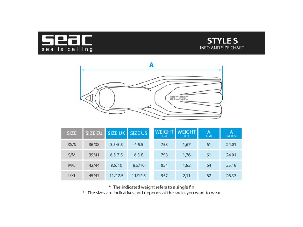 SEAC Style-S jsou potápěčské ploutve se 100% italským bungee, které kombinují moderní a atraktivní design s vysokým výkonem, což je činí vhodnými jak pro rekreační, tak profesionální použití.