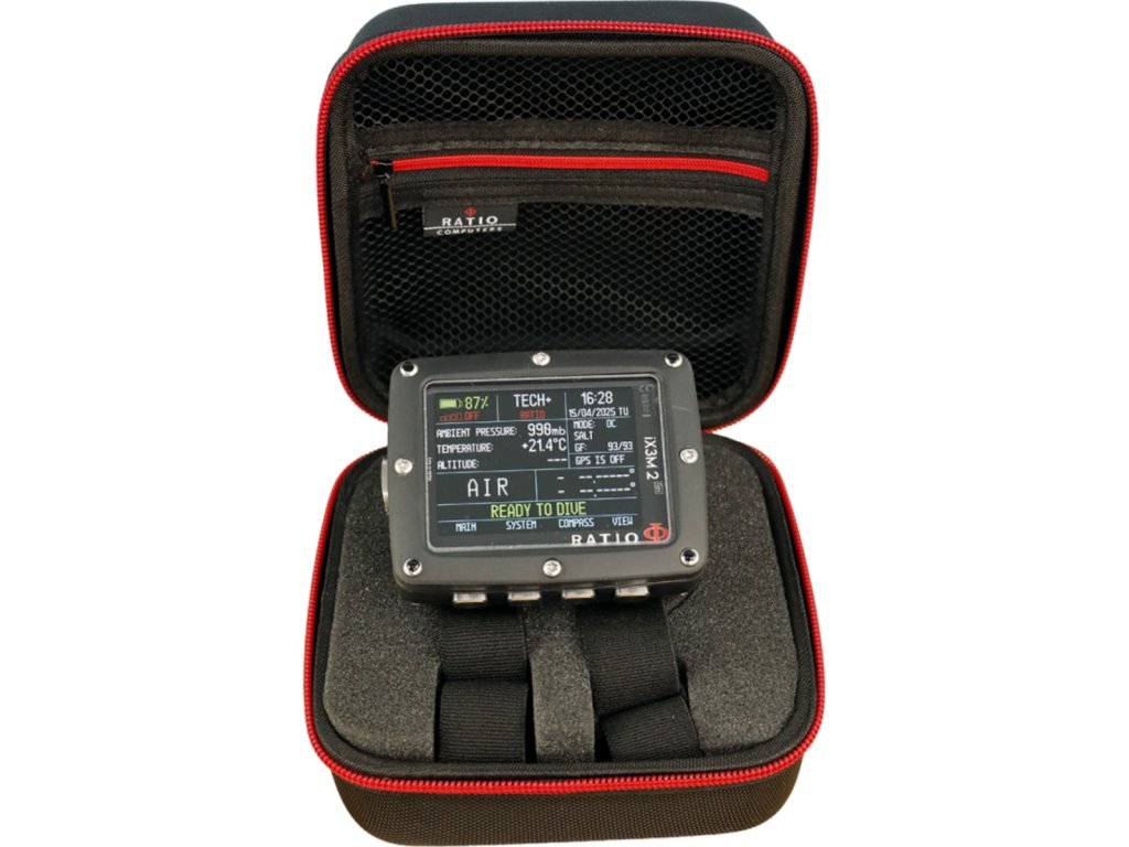 Pevné pouzdro pro váš potápěčský počítač RATIO. Navrženo pro iX3M2 nebo iDive COLOR a USB kabel.
