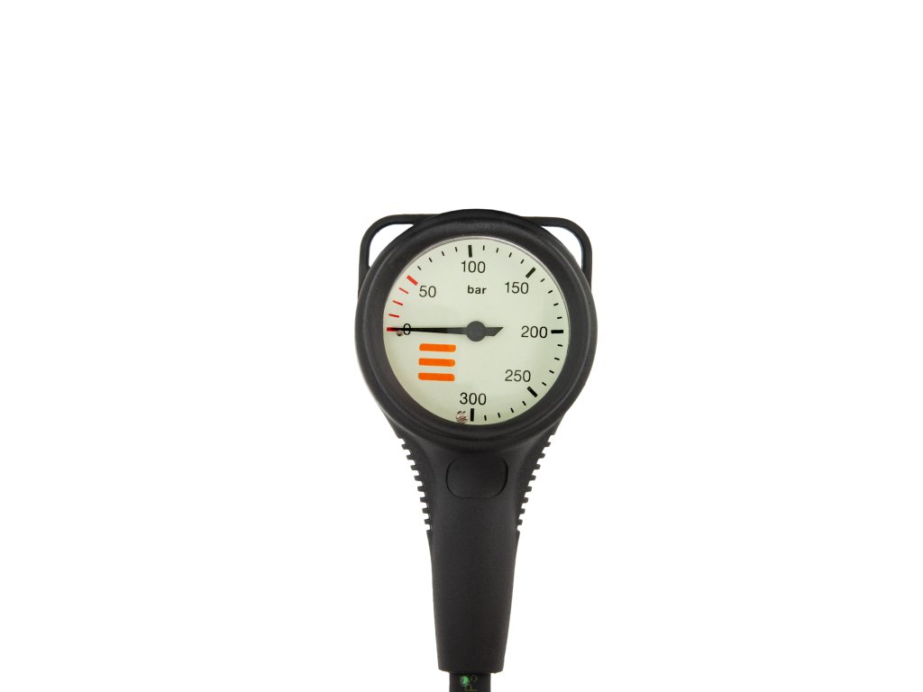 Manometr Tecline v pouzdře, 300 bar, HP hadice 80 cm, guma.