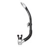 Šnorchl s výdechovým ventilem a protivlnovou krytkou. Šnorchl Spectra má vrapovou hadici a anatomický pohodlný náustek. Přichycení k pásku masky je rychle odepínací.