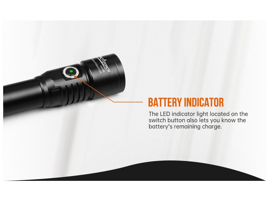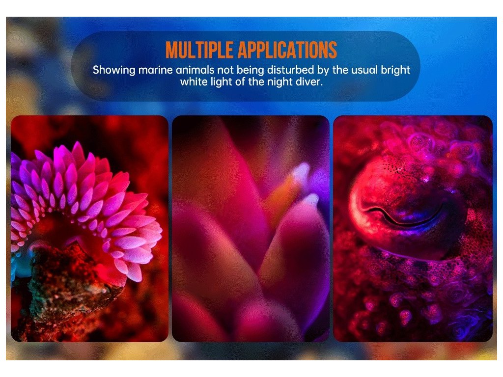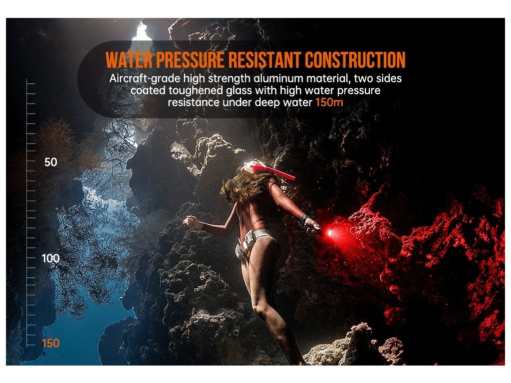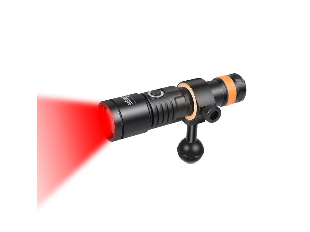 OrcaTorch D530V je profesionální potápěčské video světlo s UV paprskem, s max výstupem 160 lumenů. Má 120 ° super širokoúhlý světlomet bez slepého úhlu pro fotografování pod vodou. Světlo má boční spínač ze slitiny titanu, který nabízí 2 režimy osvětlení, což umožňuje snadné ovládání pod vodou. Kontrolka LED umístěná na tlačítku přepínače také informuje o zbývající baterii.