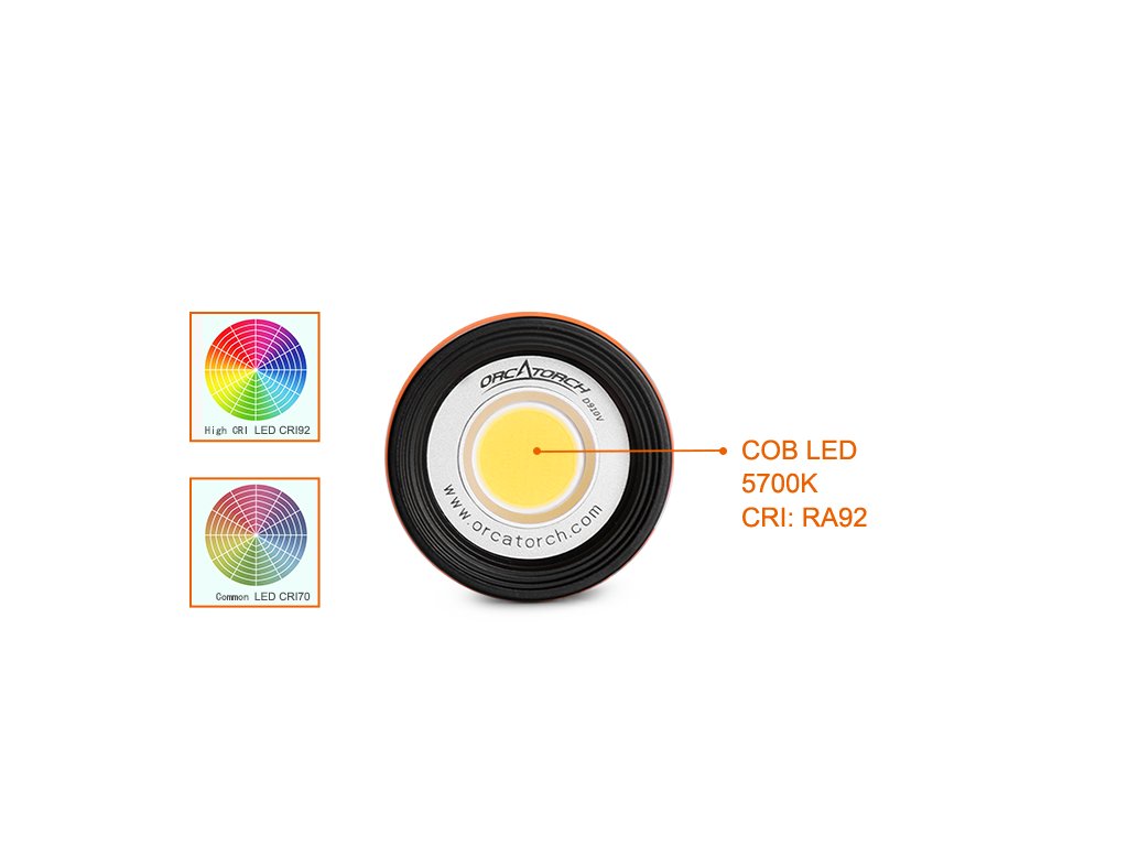 OrcaTorch D910V je vysoce neutrální bílé video světlo CRI pro fotografování ve vodě. Je vybaveno čipem CREE LED, který vytváří rovnoměrné osvětlení s výstupem 5000 lumenů a širokoúhlým paprskem 120 stupňů. Díky první technologii magnetického rychlého nabíjení lze světlo nabíjet bez vyjmutí baterie.
